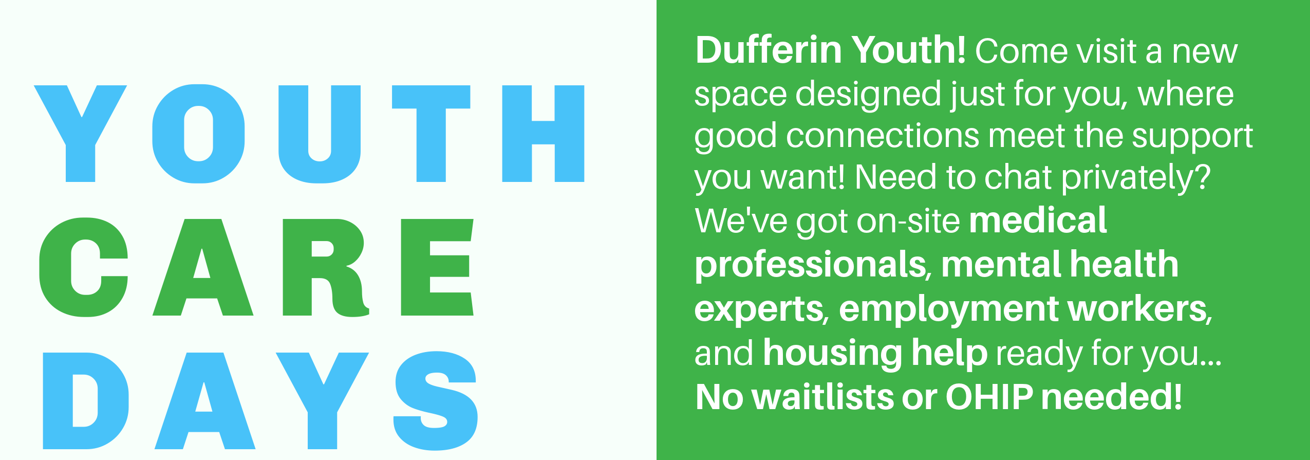 Come visit a new space designed just for you, where good connections meet the support you want! Need to chat privately? We’ve got on-site medical professionals, mental health experts, employment workers, and housing help ready for you… No waitlists or OHIP needed!